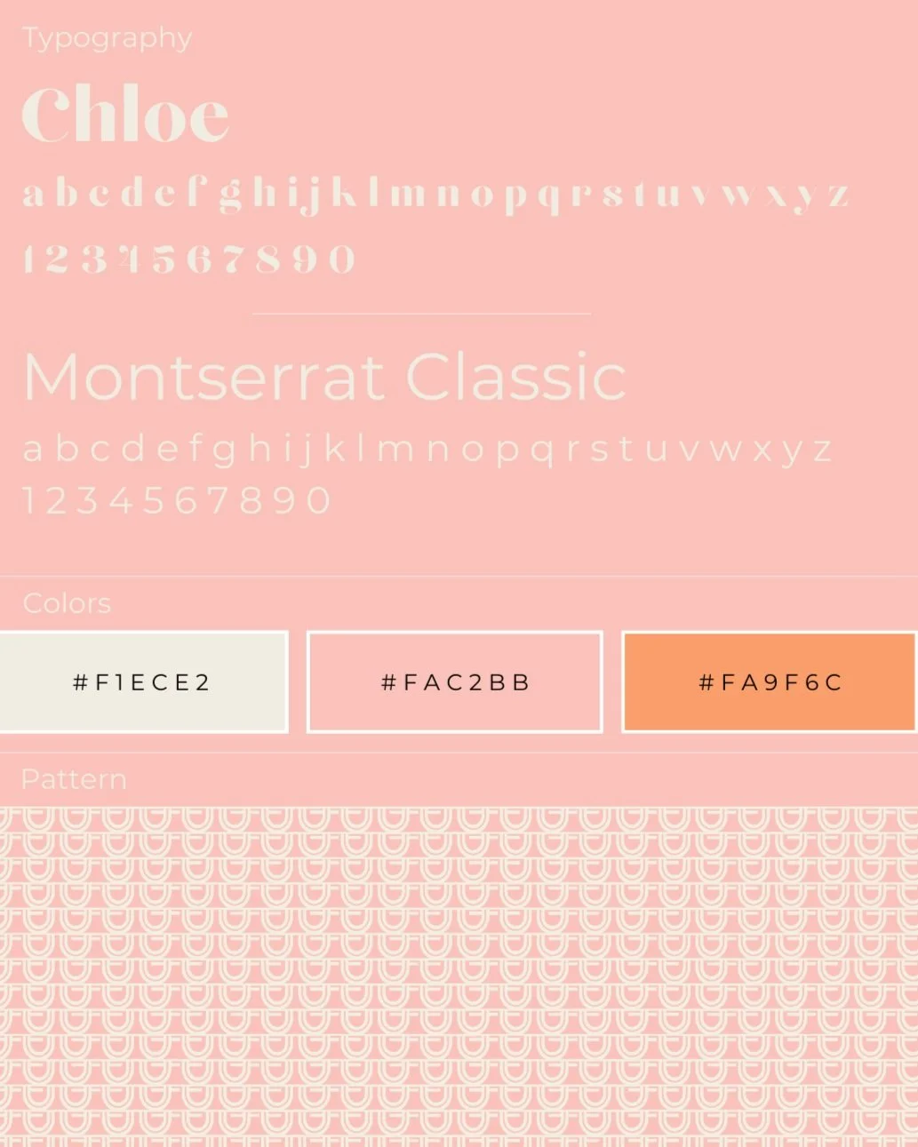 The brand package features two complementary fonts: Chloe, a soft, elegant serif font that adds personality and sophistication along with Montserrat Classic, a clean, modern sans-serif that enhances readability and professionalism. Chloe exudes high-end playful aesthetics, while Montserrat keeps the brand fresh and modern, coinciding to honor the creative roots of the brand.