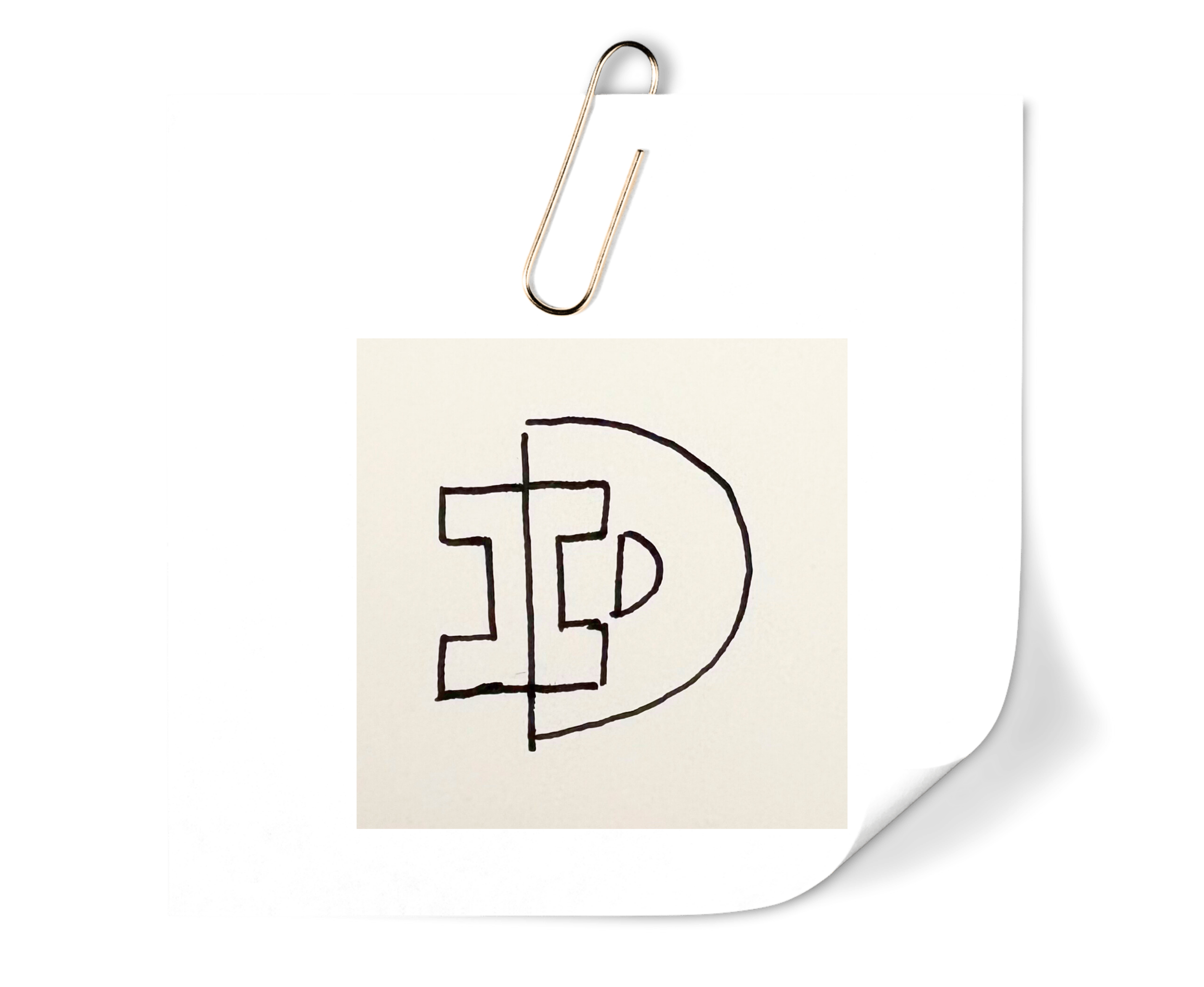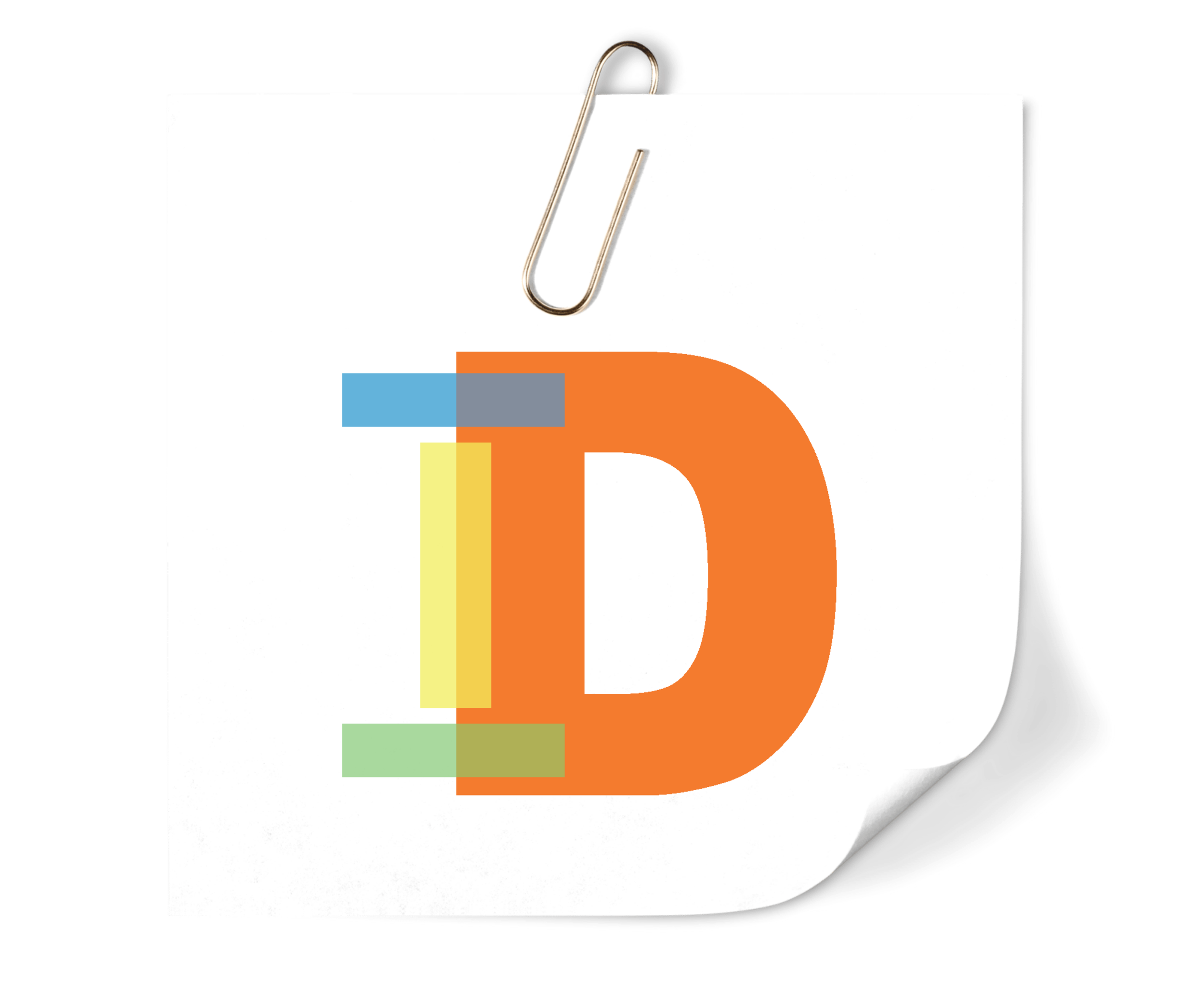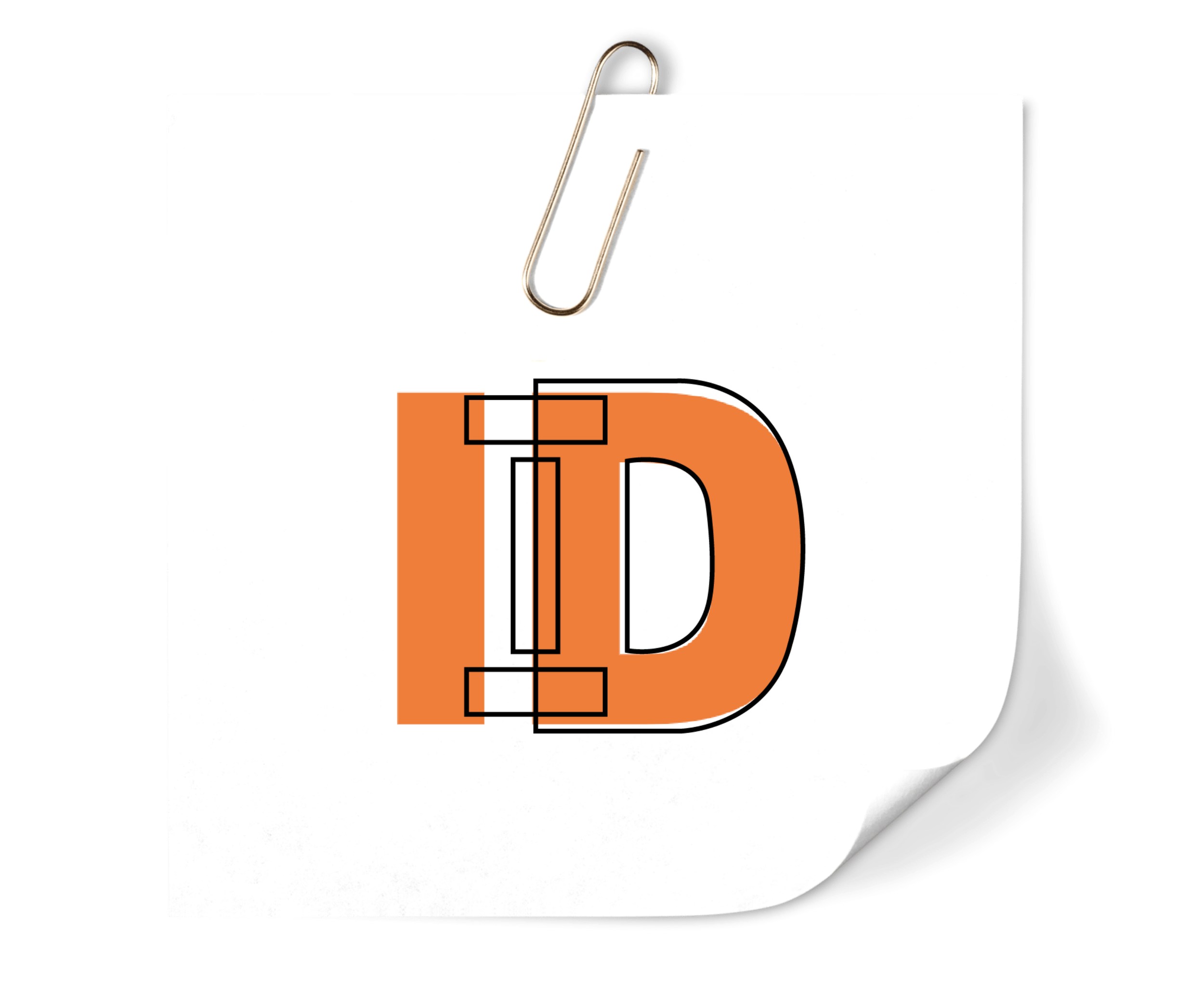 Every great design starts with a simple sketch derived from many iterations. This is where ideas are free to flow, evolve, and take shape. After doing over 100 iterations, I settled on the simple ID logo where the “I” slices through the “D.”